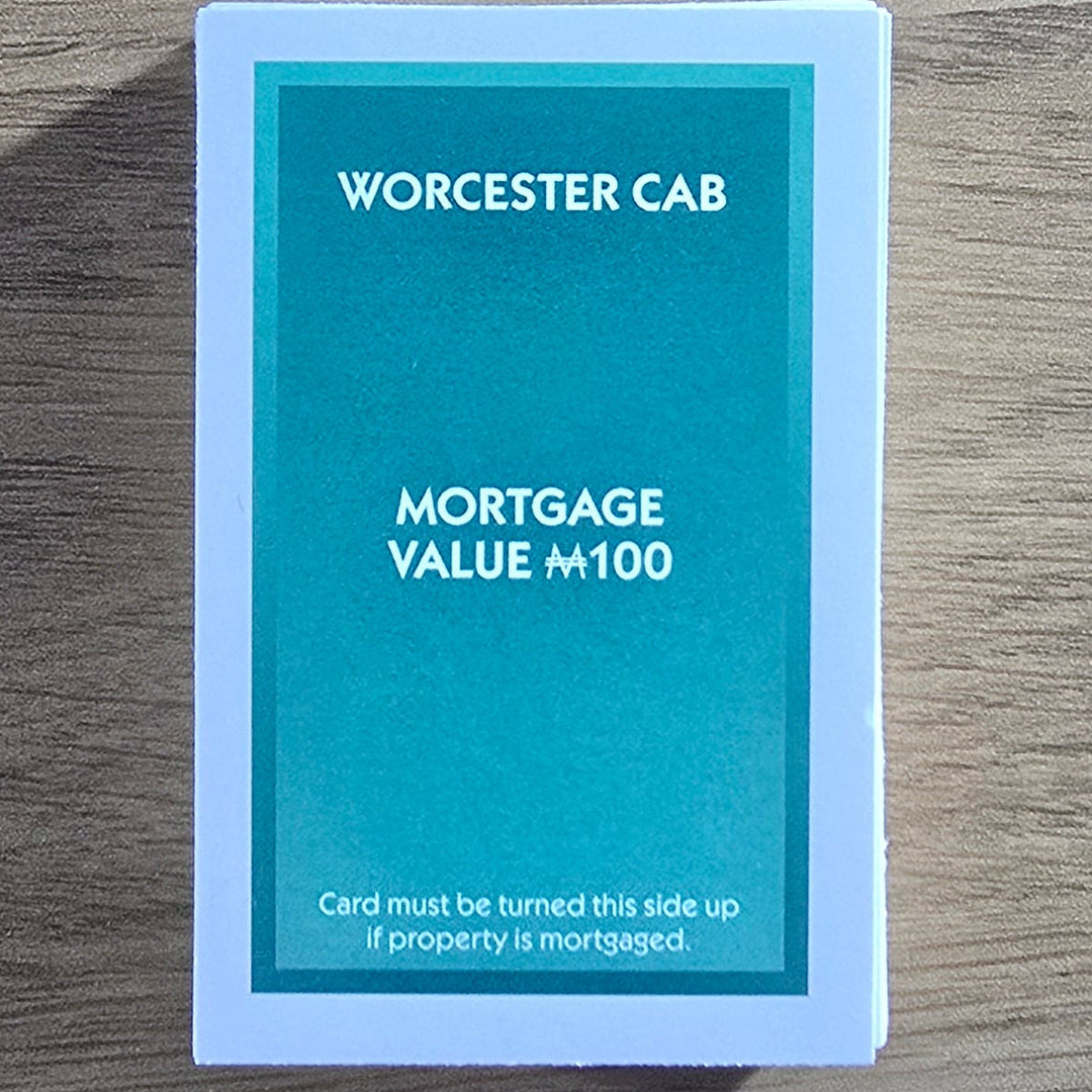 The Authentic Monopoly Cards are genuine official game parts taken from regional Monopoly editions, including Worcester (USA), Winchester, San Antonio, and Taunton.