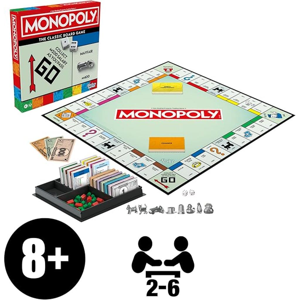This Monopoly: Classic Edition enhances the timeless property trading game with larger playing pieces and an integrated storage tray for improved gameplay and organisation. It keeps all the charm of the original version—buying, trading, and developing properties—but with improved usability for families, younger players, or those who prefer larger, easier-to-handle components.