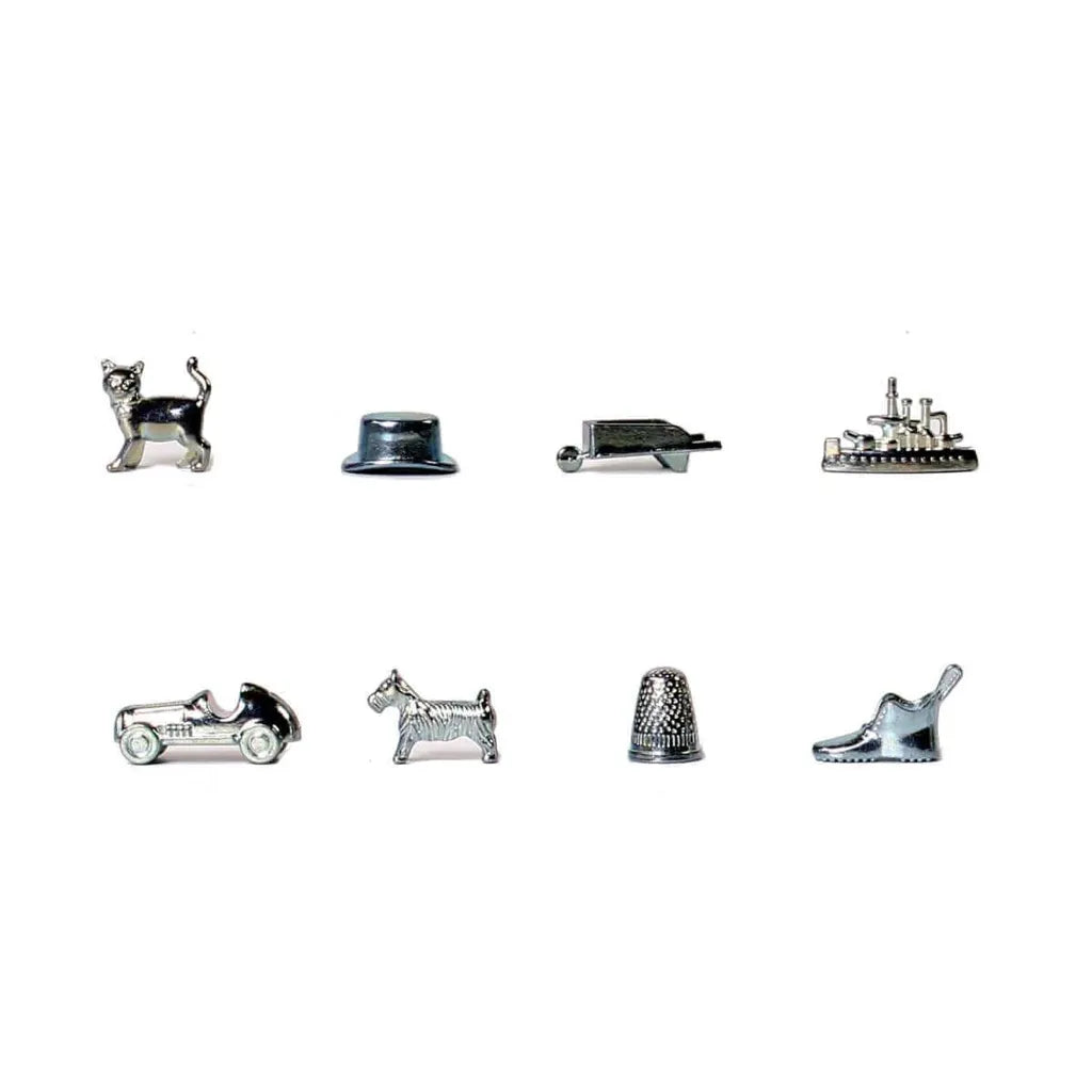 Includes game board, 6 classic tokens, title deed cards, custom Community Chest and Chance cards, play money, houses & hotels, and 2 dice.